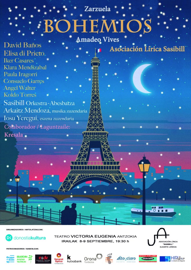 La Asociación Lírica “Sasibill” representará los días 8 y 9 de Septiembre a las 19:30 horas en el Teatro «Victoria Eugenia» de Donostia la zarzuela «Bohemios» de A. Vives. Compra tu entrada!