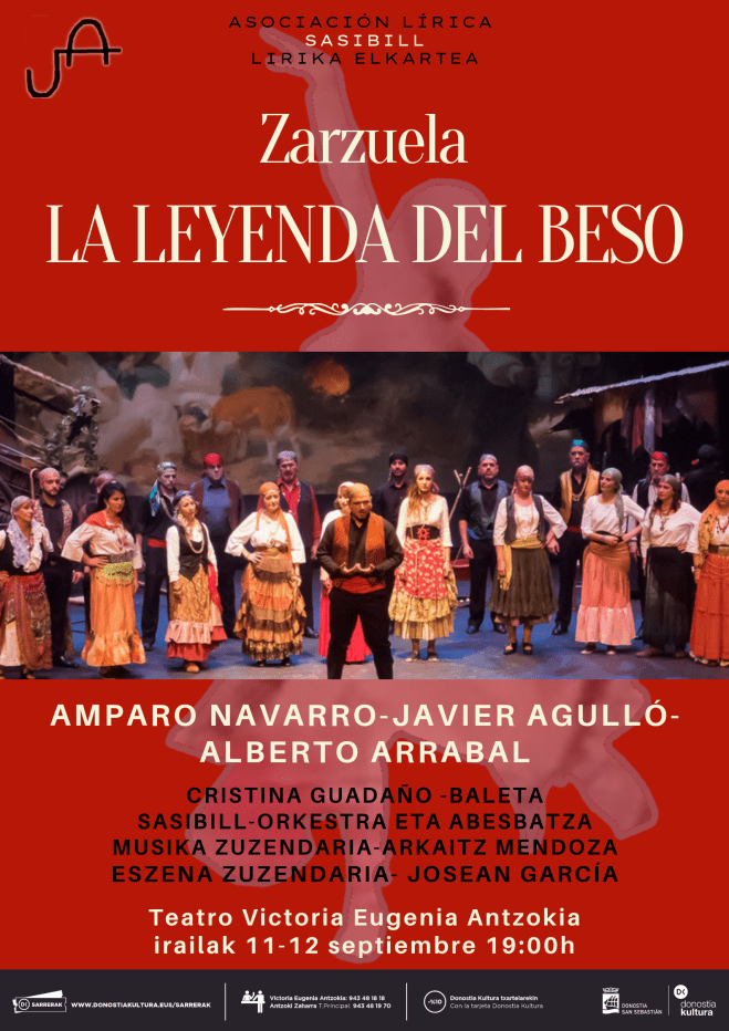 La Asociación Lírica “Sasibill” representará los días 11 y 12 de septiembre a las 19 horas en el Teatro Victoria Eugenia de San Sebastián la zarzuela La Leyenda del Beso.
